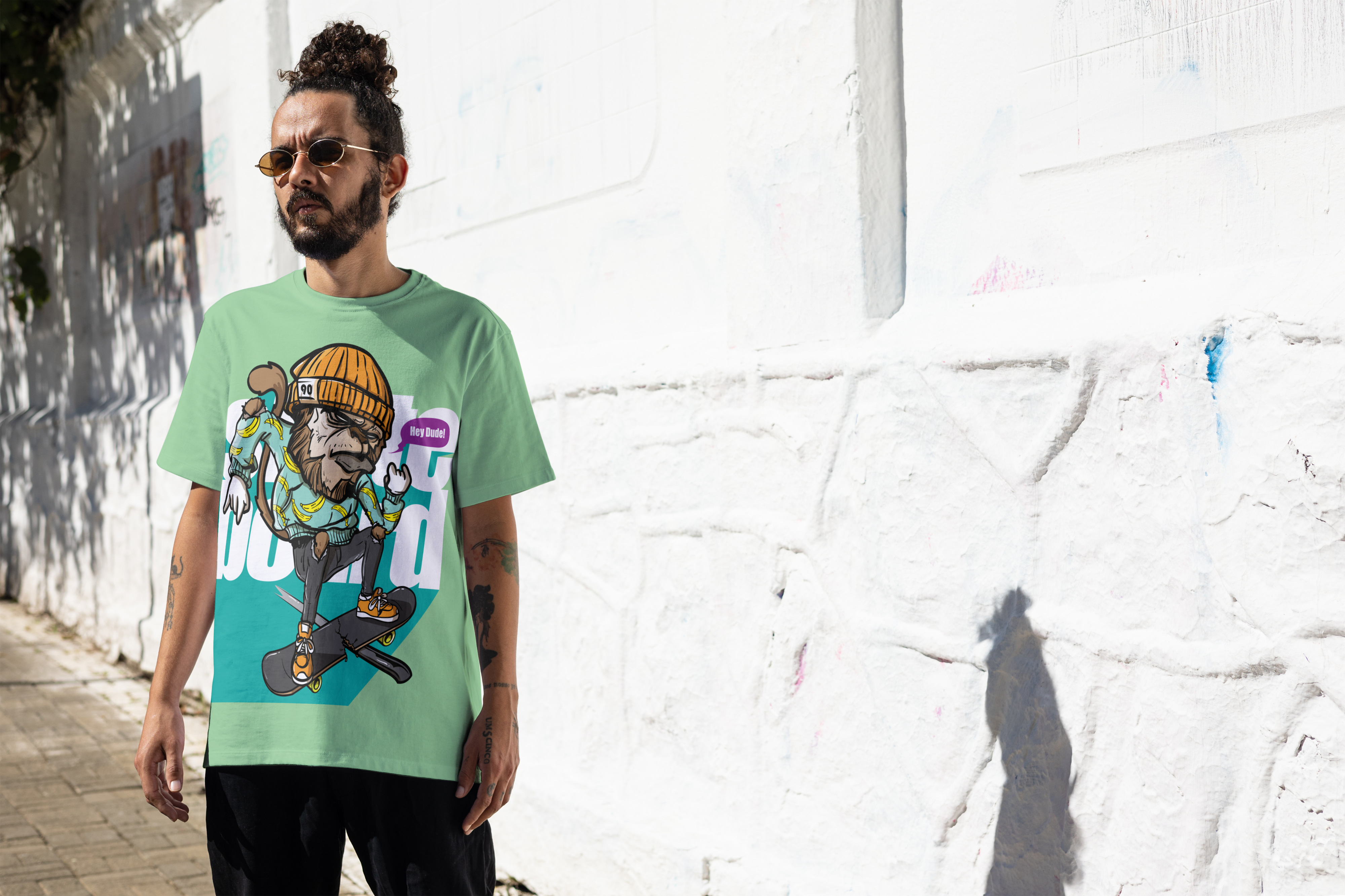 Hey Dude! Meet the ultimate street-style mascot — a wild, free-spirited monkey rocking a banana-print hoodie and shredding the streets like a total legend. This isn't just fashion, it's attitude served on a skateboard 🐵🍌🔥