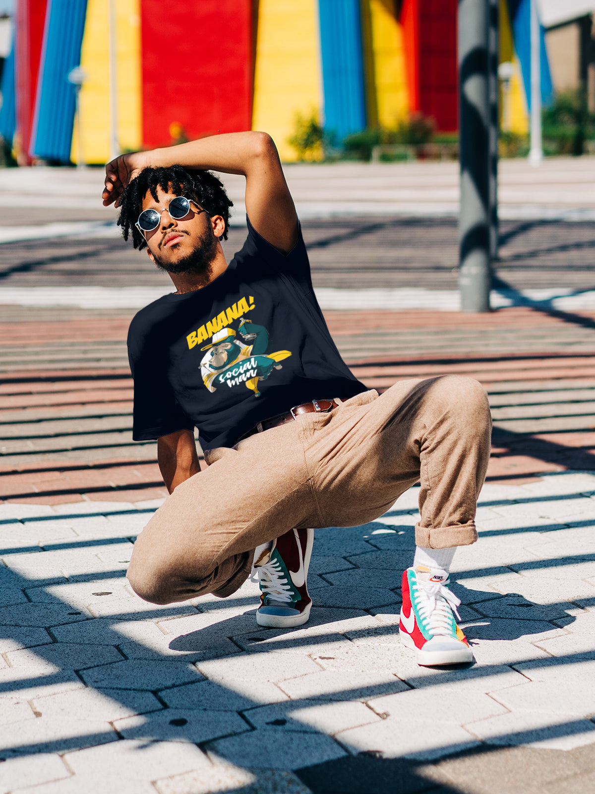 This graffiti gorilla isn’t just going bananas—he’s repping the social squad like a legend. Drenched in street style with a bold cap and banana peel confidence, this tee screams cool meets chaos.